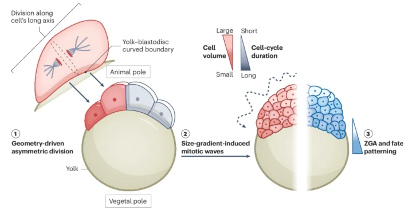 Geometry-driven asymmetric cell divisions pattern cell cycles and zygotic genome activation in the zebrafish embryo (Nature Physics, January 5) by Nikhil Mishra, Yuting Irene Li, Edouard Hannezo & Carl-Philipp Heisenberg