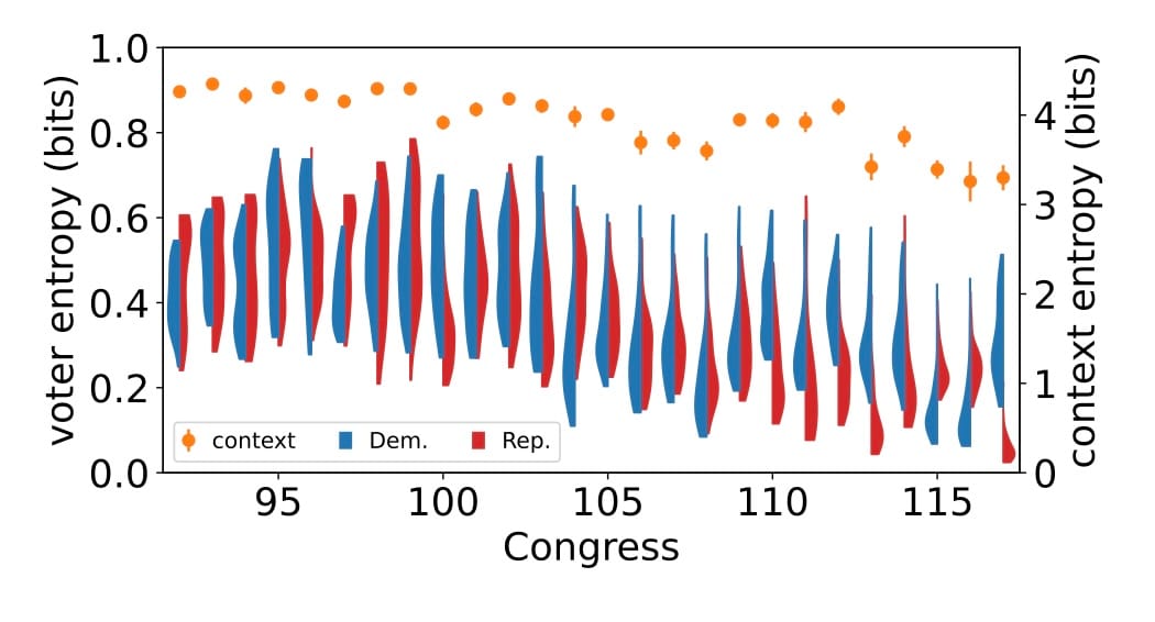 When you see the Senate voting in a more partisan way, it is also becoming simpler because there are fewer ways in which the senators vote. If you look back historically, senators are more open to defecting from their parties. So you had more complexity. But nowadays it becomes much more party locked. So you have less complexity.