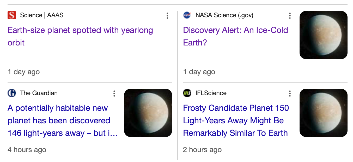 I'm guessing that most lay consumers of science communication on exoplanets probably have no clue that the lovely planet pictures that run with these stories are artists' concepts — let alone that we won't even have the needed technology to start characterizing the atmospheres of Earth-sized planets in the habitable zones of stars like ours until the 2040s. "Earth-like" sounds like air and continents and oceans and maybe life. It does not sound like 2-3 basic physical measurements. It's misleading, and will stay that way for decades.